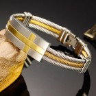 Стильный браслет для брутальных мужчин. Этот браслет отлично смотрится на мужской руке, еще больше подчеркивая его мощь стальными жгутами. Надежный замок не даст браслету расстегнуться. Желтое специальное PVD-покрытие в вакуумной среде особенно стойко к истиранию. Тяжелый по весу, упругий по сжатию, т.е. держит округлую форму.
