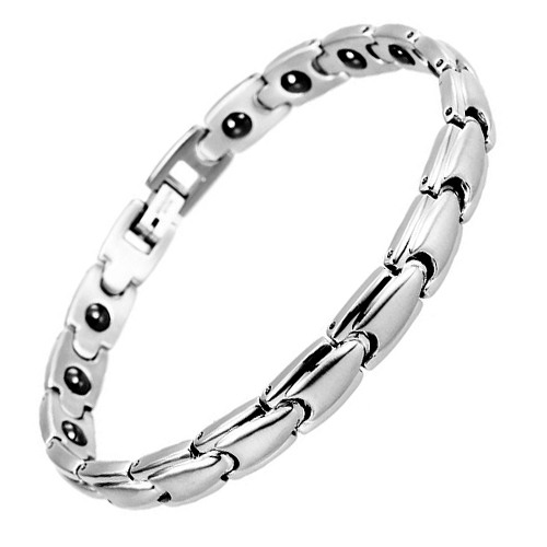 Элегантный тонкий стальной браслет с биомагнитами. Ширина браслета чуть меньше сантиметра, на внутренней части находятся биомагниты. Будет хорошо смотреться как под строгий стиль одежды, так и под стиль casual. Браслет легко уменьшить, убрав нужное количество сегментов.