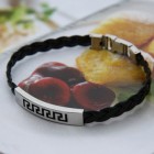 Браслет кожаный плетеный со стальной пластиной "Змейка"