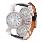 Характеристики. Кварцевые наручные часы. Стальной корпус. Кожаный ремешок. Кварцевый механизм - Япония. Сборочное производство - Китай. Высота - 61 мм, ширина - 52 мм, толщина - 9 мм. Вес - 91 гр. Корпус - стальной, циферблаты - серебристый, ремешок - черный.