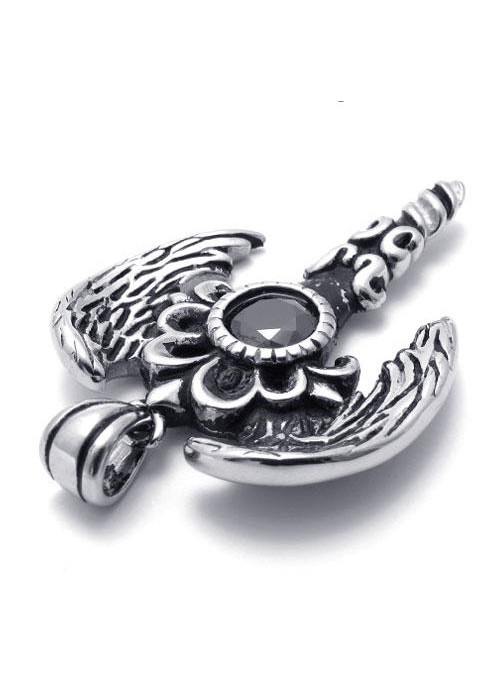 Мужской кулон в виде крыльев и черного циркона посередине.